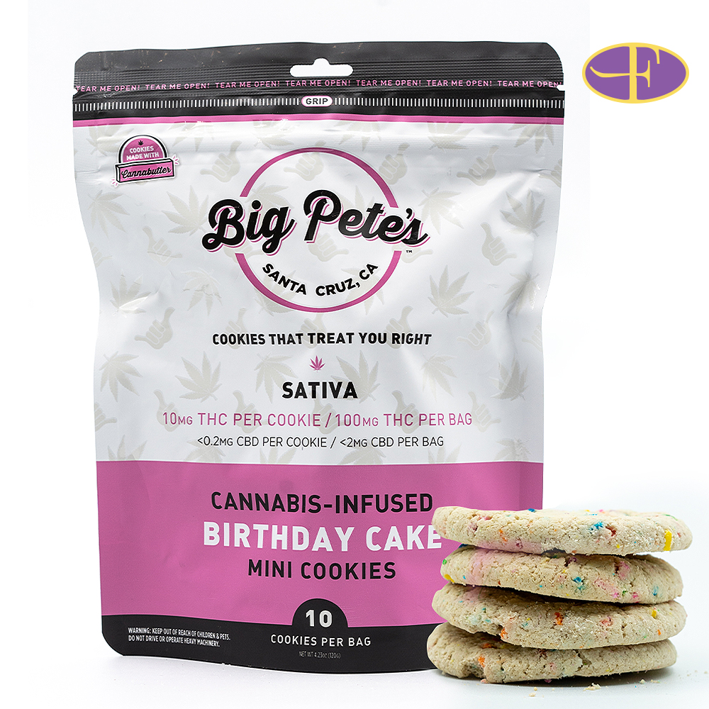Celebrate a decade of excellence with Big Pete's Treats Birthday Cake Cookie (10pk). As we mark our 10-year anniversary of creating cannabis-infused cookies, we are thrilled to introduce this special edition treat. To make it even more memorable, we have added an extra dose of sprinkles to our newest flavor, Birthday Cake. Prepare to be enchanted by the delightful combination of a sugar cookie infused with the vibrant colors of rainbow sprinkles. Join us in honoring this significant milestone and indulge in the irresistible goodness of Big Pete's Treats Birthday Cake Cookie. It's the perfect way to treat yourself and experience the joy of our anniversary celebration.