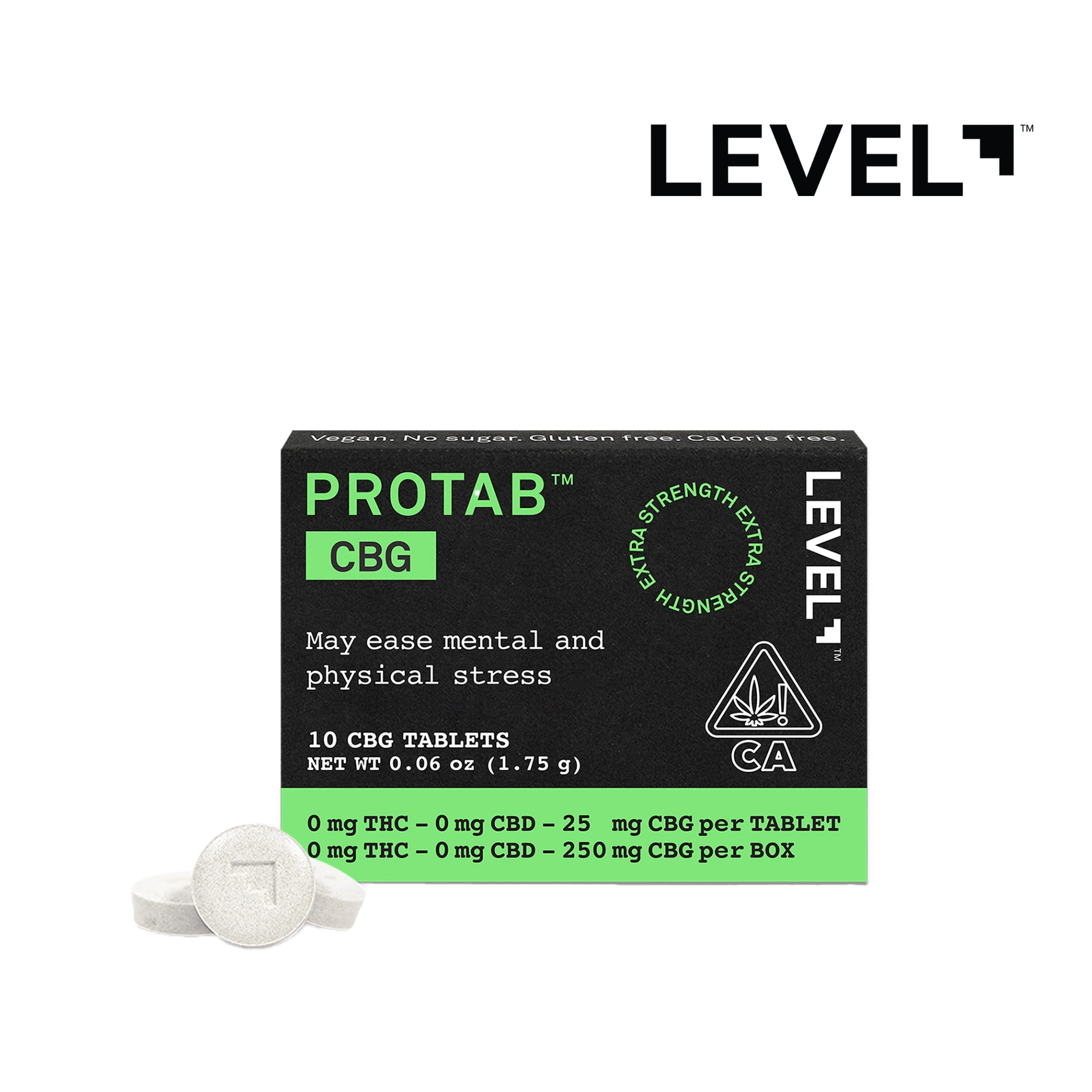 Smooth out the edges of a rough day with the extra-strength, calming effects of our CBG Protab. Highly effective and long-lasting, each tablet contains 25 mg of CBG with a duration of 3–6 hours. Should you want to consume a lighter dose, they’re scored so you can easily split one in half. Swallow with liquid.